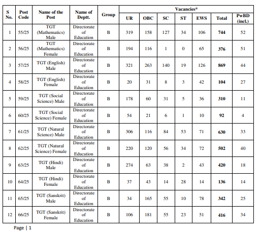 Delhi DSSSB TGT Recruitment 2025 Vacancy Details – Total 5346 Vacancies